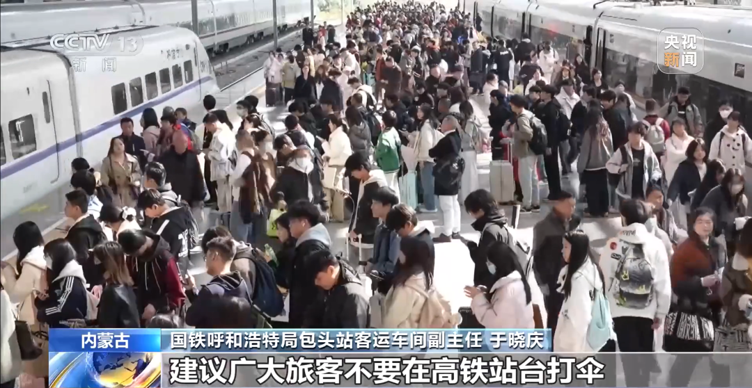 春运返乡可能遭遇雨雪天气。若是在站台上打伞,列车进站时由于气流气压等变化,增多了撑伞者被“吸”向列车的风险。气流也有可能将雨伞带到轨谈或卷到战斗网上,影响列车安全启动。