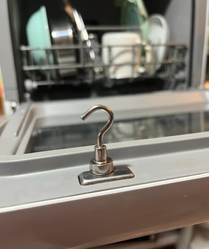 因为洗碗机门自己等于磁铁,用磁吸挂钩一吸,就能把门固定在你想要的角度,既透风又省俭空间。