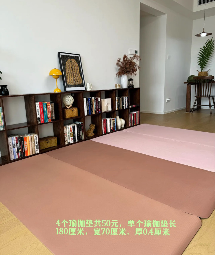 那等于,不错先将四张瑜伽垫并列一拼,就能取得一块在长度、宽度、厚度上都不输肃穆地毯的柔滑底盘,但加起来不外几十块。