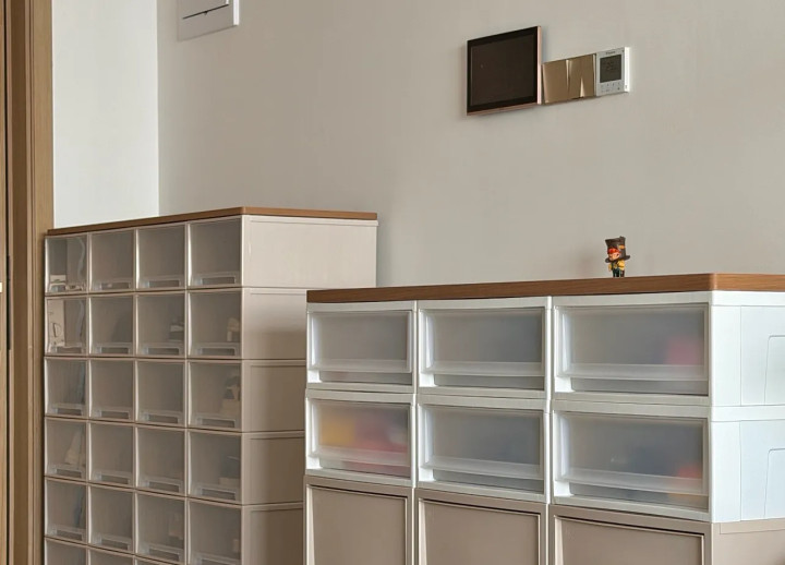 定制的鞋柜,空间太古板,一个更天真、能装的决议是:抽屉式收纳箱+增高架+木板。