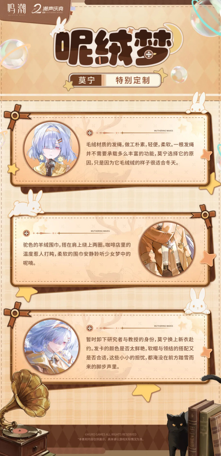 梦中有渺远的星空,掌间的温度,PG电子(PocketGames)游戏官网还有商定之东说念主依期而来的身影。”莫宁终点定制「呢绒梦」将在3.3版块更新后上线,开云体育来望望衣饰的细节吧。✦获得形貌✦3.3版块更新后,莫宁终点定制「呢绒梦」将耐久上架衣饰商城。3.3版块时分,购买「呢绒梦」可享受限时特惠,限时特惠售价为1980月相。限时特惠售卖畛域后价钱将规复至2480月相。