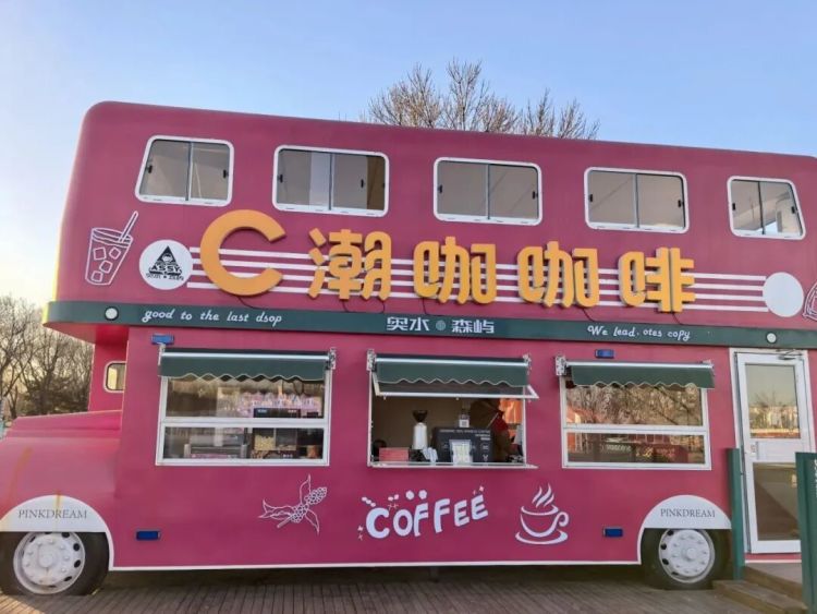 粉色巴士咖啡车:仙女心爆棚的咖啡车,来杯特调咖啡,一分彩拍“巴士+咖啡”合影,甜妹风径直拿持~