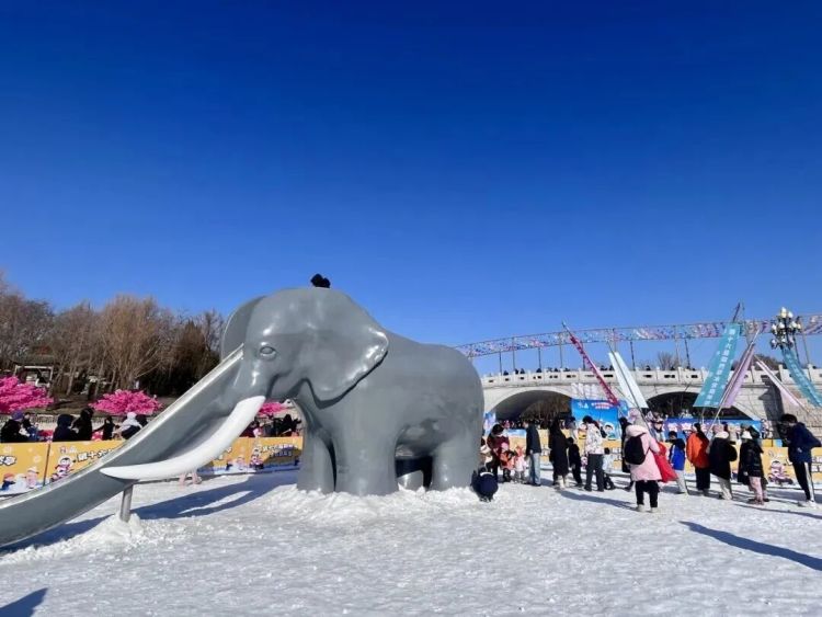 冬日的欢然亭公园南湖中央,一座复刻版的大象滑梯静静赠给在白净白雪中,清翠的体态、记号性的长鼻子滑说念,一亮相便成为第十六届欢然亭冰雪嘉年华的温雅焦点,它的出现不仅让搭客们安身段验、重拾儿时心仪,更带火了公园同款文创雪柜贴,让冬日情愫得以恒久留存。