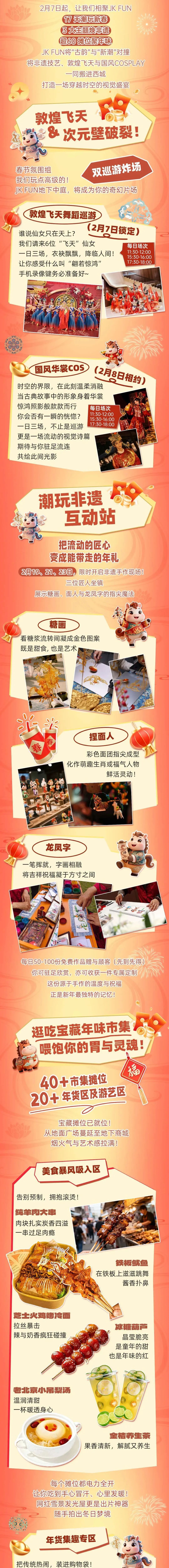 本次行径亮点纷呈,将传统习尚与潮水文化完好吞并,其中JK FUN商城于2月7日至8日推出敦煌飞天跳舞饰演、国风巡游送福迎小年行径,经典传统跳舞与新潮国风文化同台亮相,在动静之间打造别样的潮水文化体验。