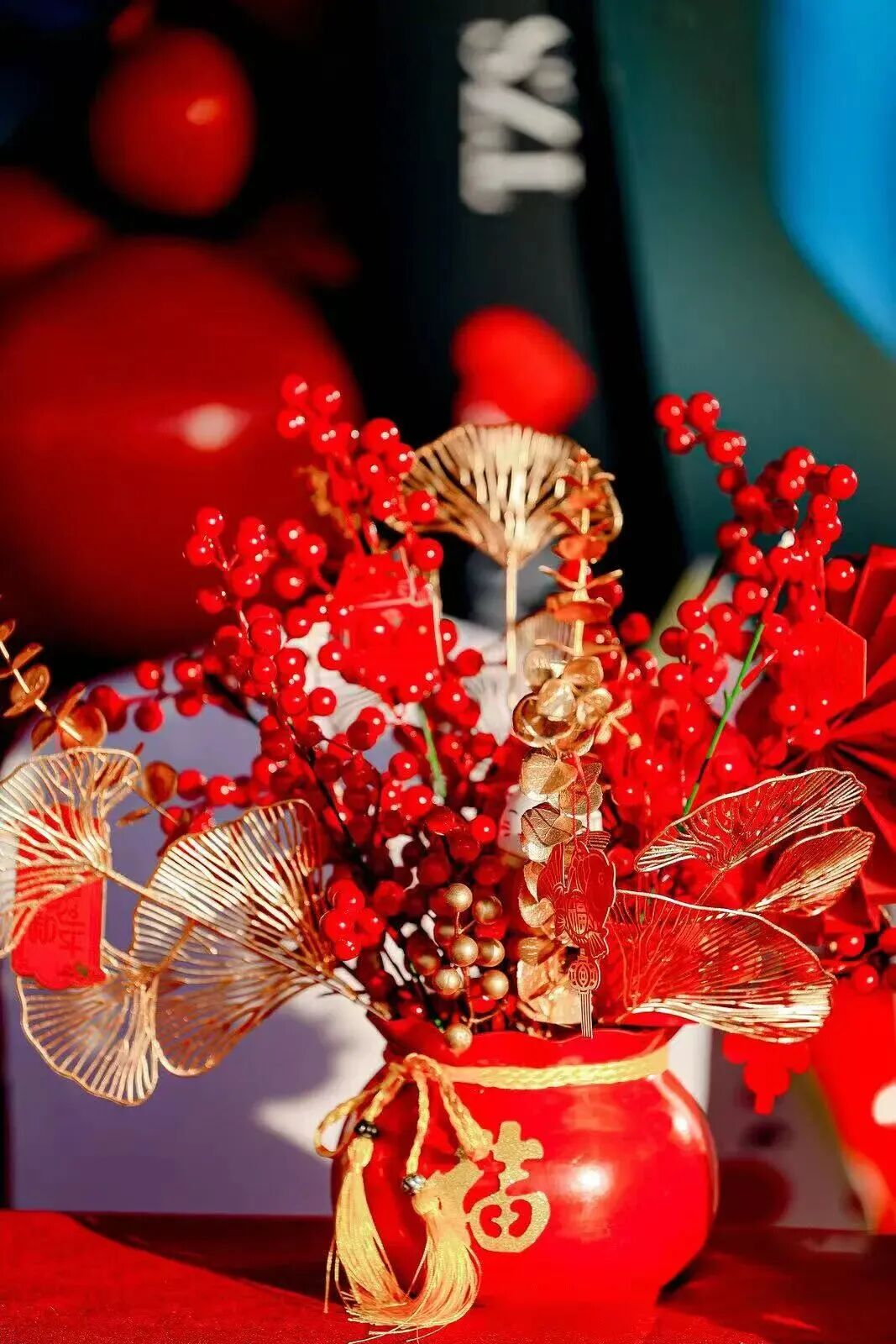 超7米高心愿花瀑,颤动的“红金花瀑”流泻而下,成为开年必打卡的植物艺术安设,许下心愿,与花共绽。