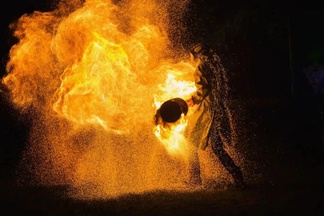 18:00 东南门广场,非遗火壶饰演颤动开演,变脸、钢花舞、火龙炮等绝技在火焰中绽放。