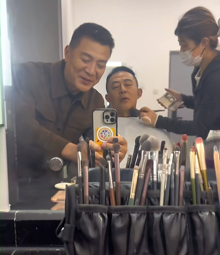 但献技后台就莫得这样光鲜了,刘之冰亦然挤在东谈主堆里补妆,把握都是要献技的演员,刘之冰的化妆间是个大间,刚好和他几个多年好友聚在一齐。