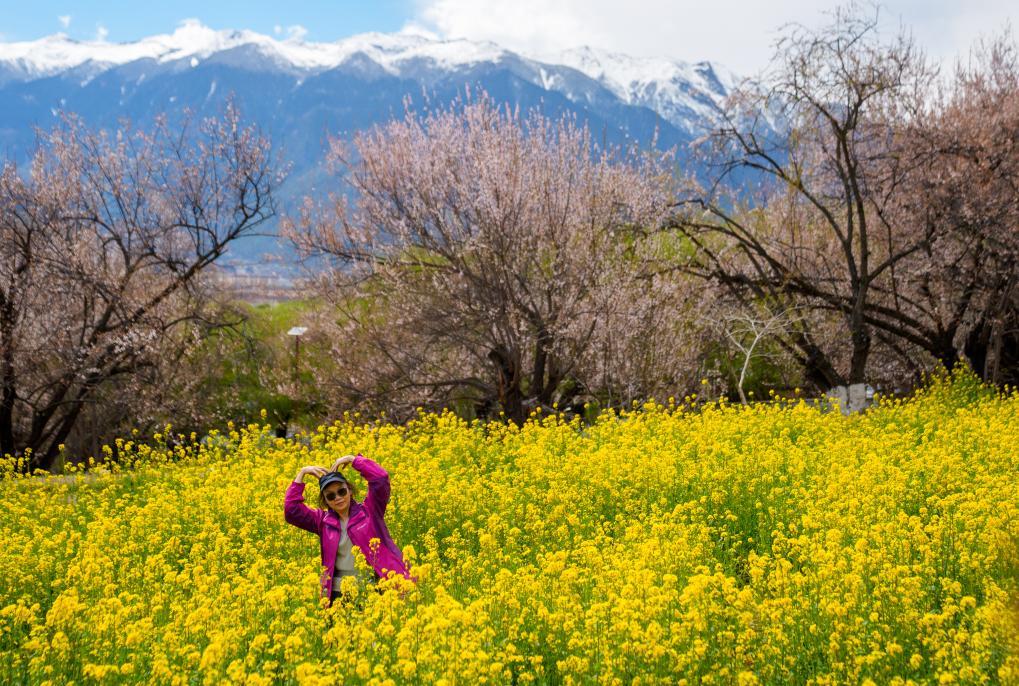 2026年4月2日,搭客在林芝市巴宜区嘎拉村拍照眷恋。新华社记者 丁增尼达 摄