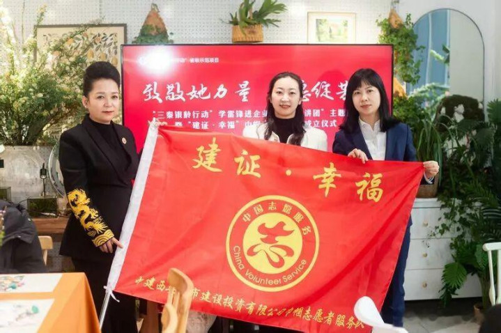 寰宇最好意思志愿者、陕西省慈善计划会副会长、“银发宣讲团”认真东说念主马盼为企业巾帼志愿就业队授旗,中建西安城市投资有限公司概括办公室主任林敏接旗。中建六局(中建丝路)工会女员工委员会主任王筱雨致辞,中建西安城市投资有限公司工会主席张英智、西安家禧社会责任就业中形态事长梁柯出席行动。