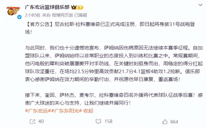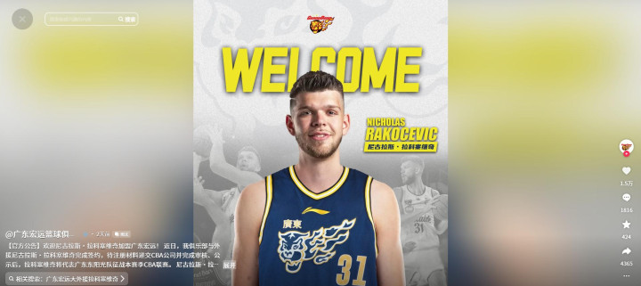 广东宏远篮球俱乐部官方发布公告阐发,外助尼古拉斯・拉科塞维奇依然成功完成联赛注册关连经由,从即日起肃肃代表球队出战赛事。
